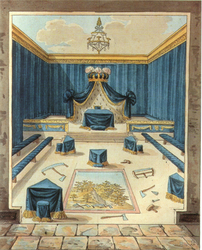 In origine, il Quadro di Loggia era un disegno tracciato con gesso o carbone sul pavimento, un atto rituale eseguito dai Maestri delle Cerimonie. Alla fine dei Lavori, questo schema veniva cancellato, riportando il luogo alla sua dimensione profana.